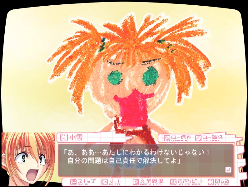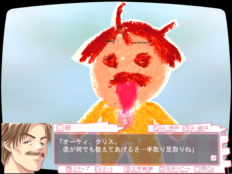 さて、結局クリスは誰かに相談しようと決めるわけだが、何かひどいイラストで各キャラクターが紹介されてて笑ってしまう。幼稚園児のクレヨン画かww