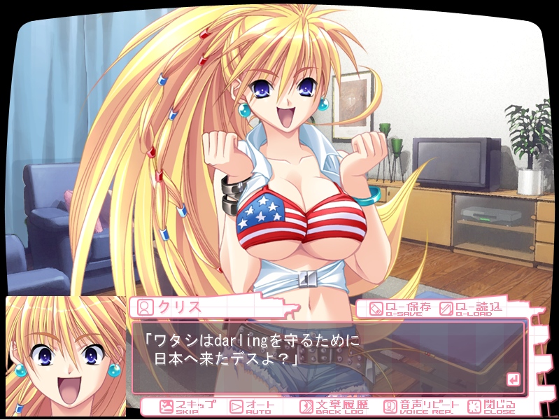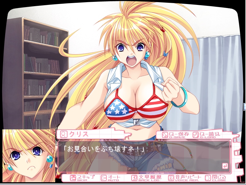 浩二の頭と同じくらいあるクリスのバスト。いや、待ておかしい。あ、当ブログはHなCGはカットさせていただく方針なのでお見せできません。いやー、残念残念。