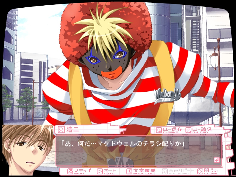 浩二と瑠璃、二人で夕食。夜の公園でマクドウェルのハンバーガー。どうやら浩二と瑠璃の関係は周囲に秘密らしい。