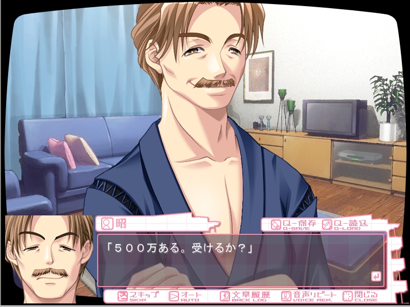 勿論、浩二を助けるつもりで昭は言っているのだが、子供を甘やかすだけが親ではないことを知っているから浩二が負けたらきっちり500万取り立てるつもりでもいる。そりゃそうだ。親から恵んでもらった金で女の子を助けるなんて男じゃない。そこに幾らかの温情が混ざっていようと勝ち取ったものでなくては。